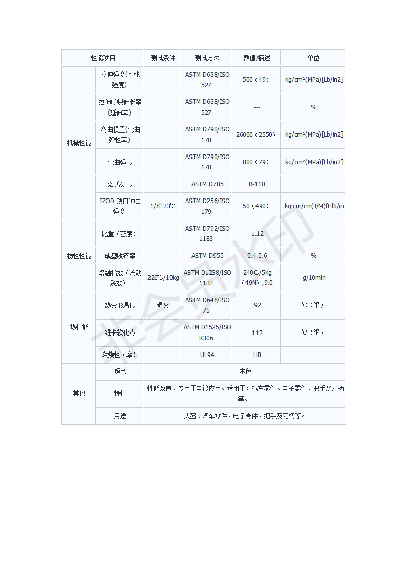 汽車內外飾:儀表板,飾柱,儀表前蓋,格柵,內外飾件 2.商務設備機殼和內置部件:筆記本/臺式電腦,復印機,打印機,繪圖儀,顯示器 3.電信,移動電話外殼,附件以及智能卡(SIM卡): 4.電器產品,電子產品外殼,電表罩和殼體,家用開關,插頭和插座,電纜電線管道 5.家用電器,如洗衣機,吹風機,微波爐內外部件等。6.頭盔